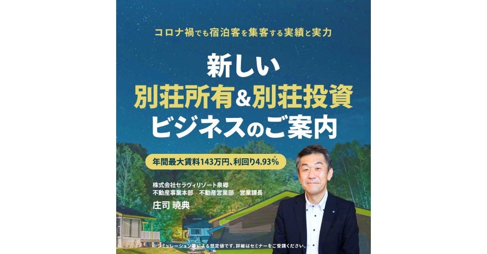 10月29日(土)無料オンラインセミナー開催!新しい「別荘所有&別荘投資ビジネス」のご案内