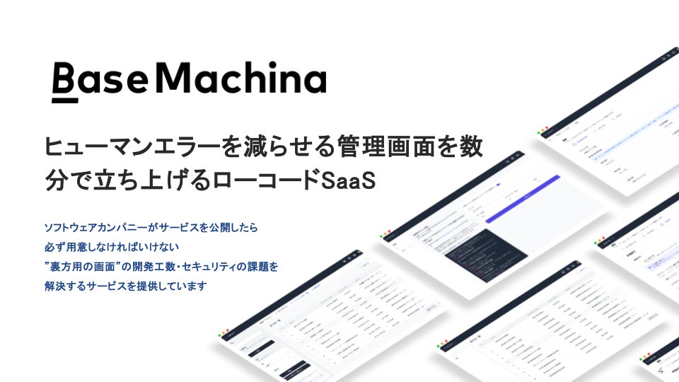 また、ベースマキナの便益の1つは「あらゆるオペレーションを、数分で誰でも安全に。」であり、