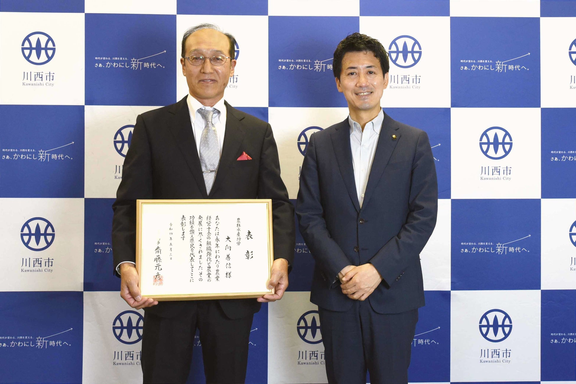 本市の大向善信(おおむかいよしのぶ)さんが農林水産功労部門において受賞。