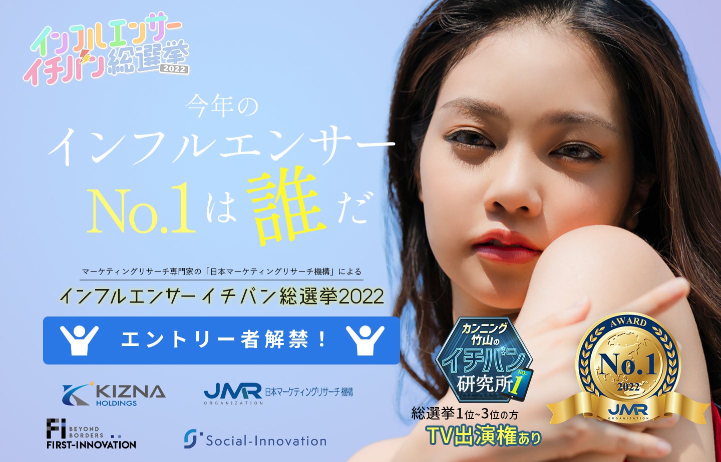 ネット上でさまざまな大手企業と企画を行うファーストイノベーションとマーケティングリサーチ機構が提携し、「ユーザー参加型のインフルエンサーWEB企画」であるインフルエンサー総選挙にて、コラボ企画『インフルエンサーイチバン総選挙2022』をスタートしました。