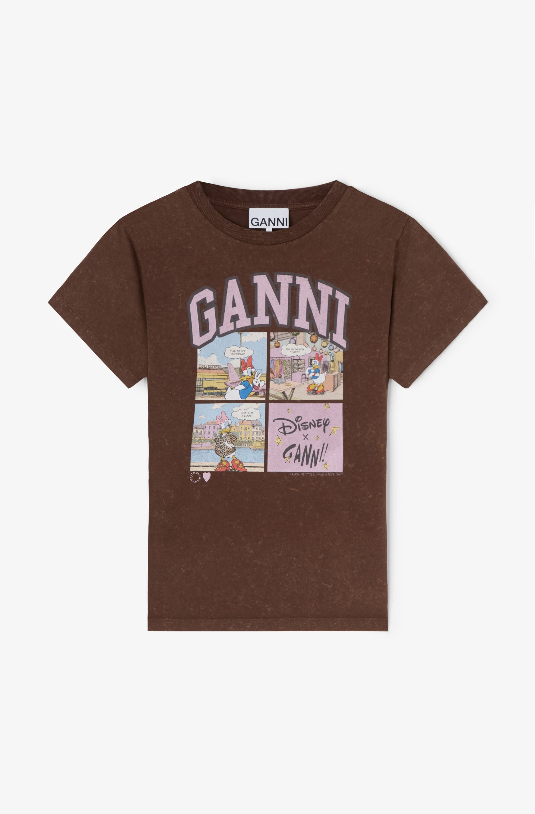 本ファンジンでは、デイジーダックが自分らしいスタイルを見つけていく旅として、コペンハーゲンを巡る様子が描かれています。活気あふれる街並みを自転車で走り抜けるシーンから、GANNIのクリエイティブ・ディレクターであるDitte Reffstrup(ディッテ・レフストラップ)のカラフルな自宅を訪れる場面まで、さまざまな瞬間が切り取られています。本コレクションの着想源となったイラスト付きストーリーを収録したこのファンジンは、新たに描き下ろされたイラストと遊び心あふれる物語を通して、デイジーダックの冒険の世界へとより深く引き込みます。