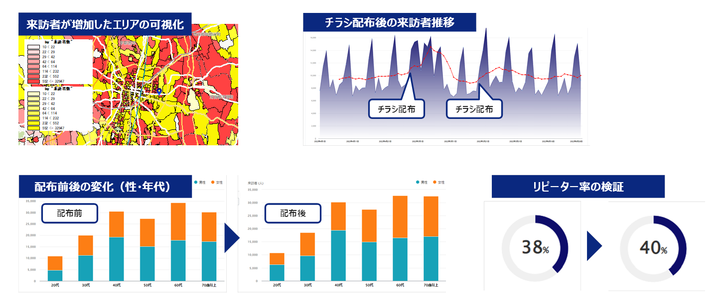 チラシ配布前と後の人流データを比較することによってプロモーションの効果を客観的に把握します。