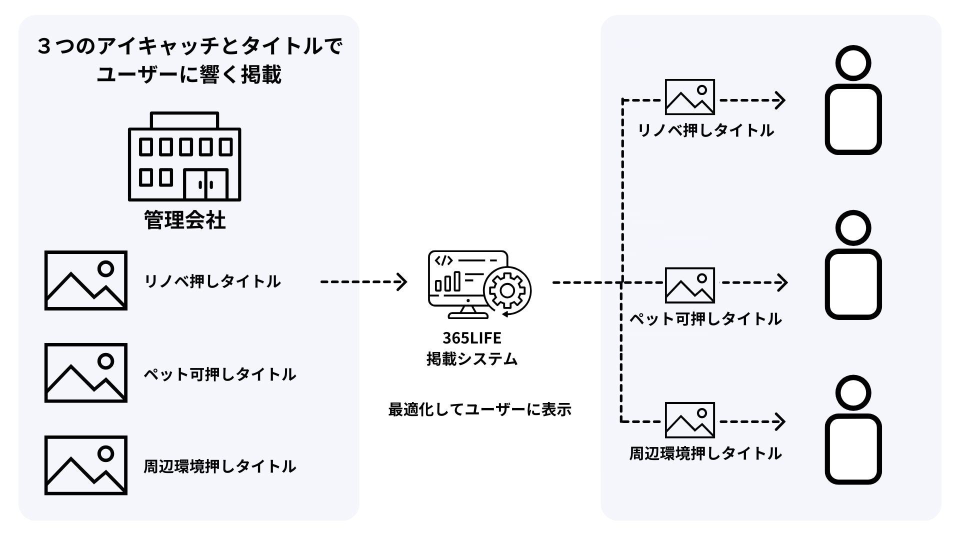 365LIFEは前述の8)で記載のように、1つの物件を複数の切り口でユーザーに表示する機能を搭載しています。同じ物件であっても掲載の仕方によって反応するターゲットが違うからです。