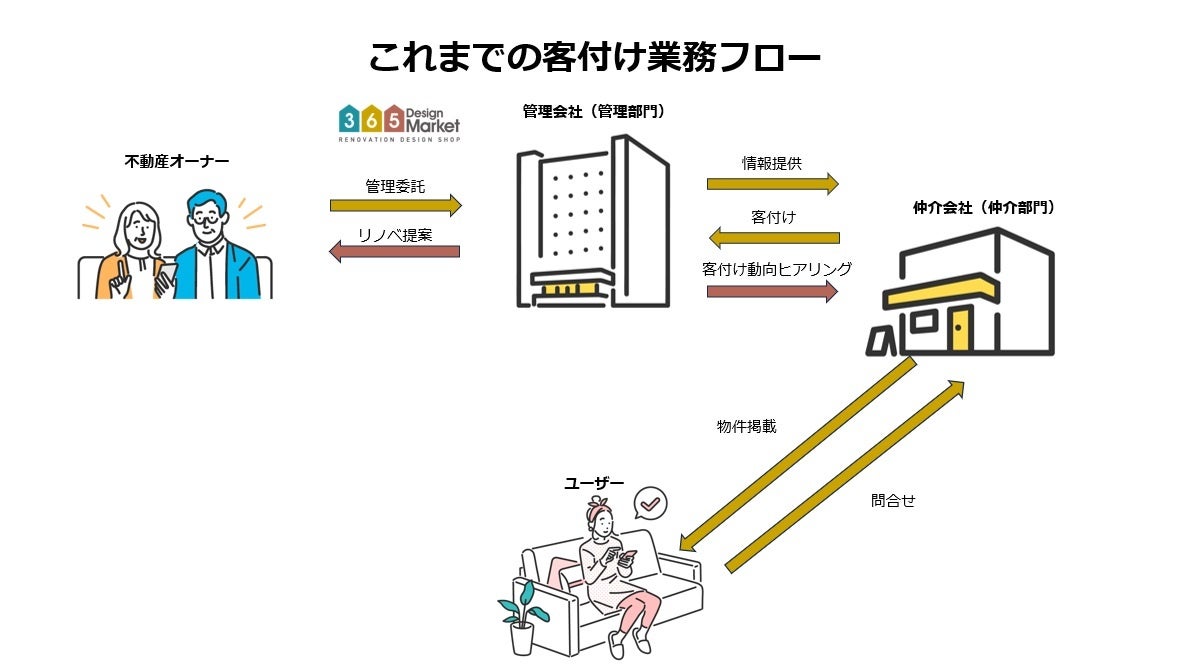 これまでの客付けフローでは情報が管理会社(管理部門)まで届かない。