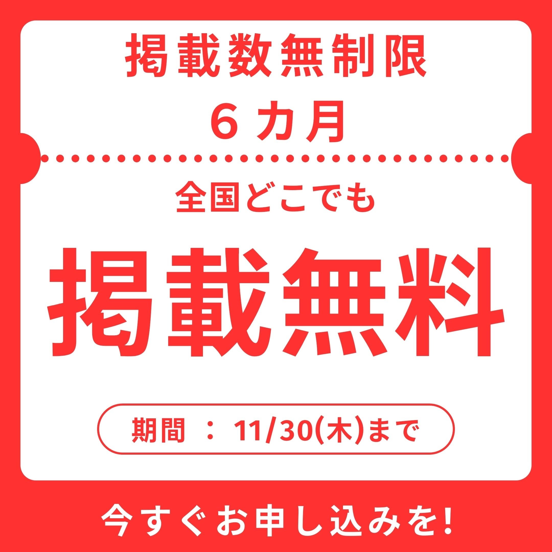 掲載数無制限でアカウント作成から6カ月間掲載無料