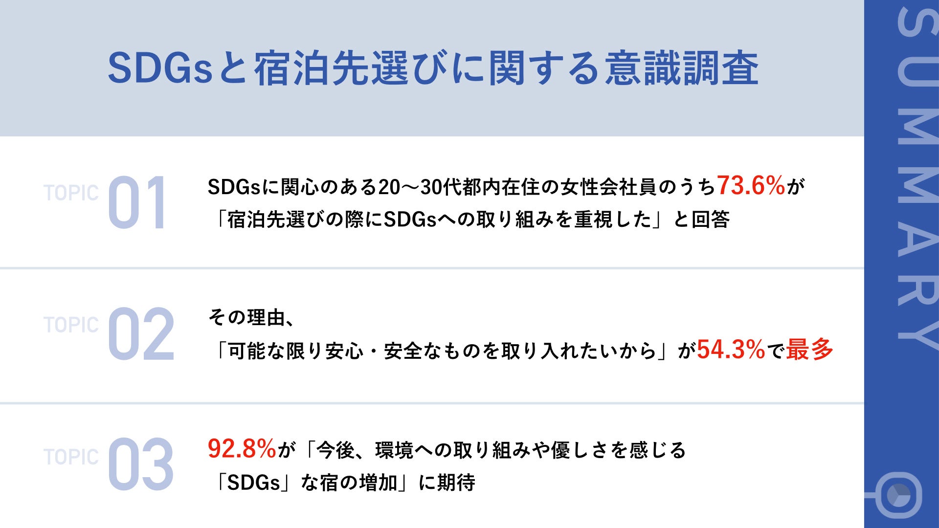 【SDGsに関心のある20〜30代都内在住・女性会社員に聞いた!】7割以上が宿泊先選びで「SDGs」を重視した経験あり 気になるその理由とは?