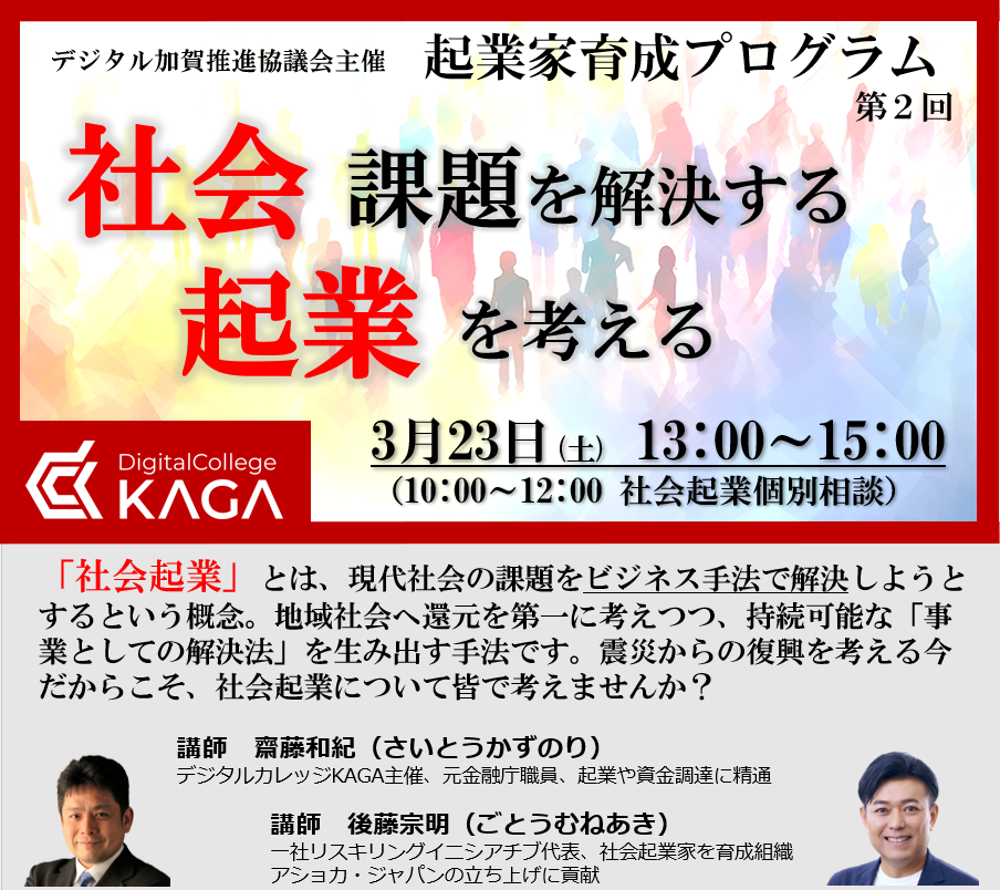 社会起業を考えるワークショップ ~デジタル加賀推進協議会主催「起業家育成プログラム」第2回~