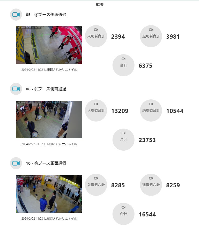 ブース正面、ブース側面に仮想ラインを引き、各場所に何人通過したのかを測定しました。