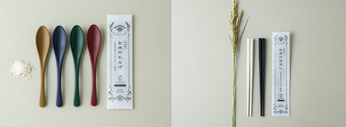 お米のレンゲ(からし・群青・深緑・朱紅)各¥660、お米のおはし(白・黒)各¥550