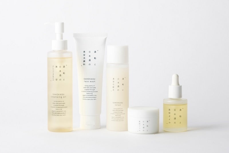 酒粕と日本酒のスキンケア クレンジングオイル 175ml ¥2,970/美容洗顔料 100g ¥1,980/美容化粧水 120ml ¥2,750/美容ジェル 40g ¥2,750/美容オイル 43ml ¥3,300