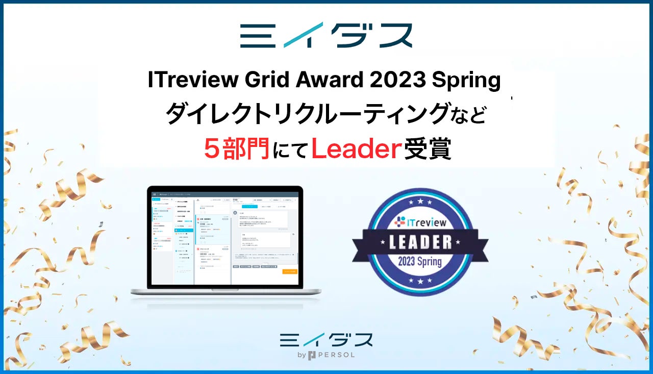 中途採用サービス『ミイダス』、「ITreview Grid Award 2023 Spring」5部門にて最高位「Leader」を初受賞