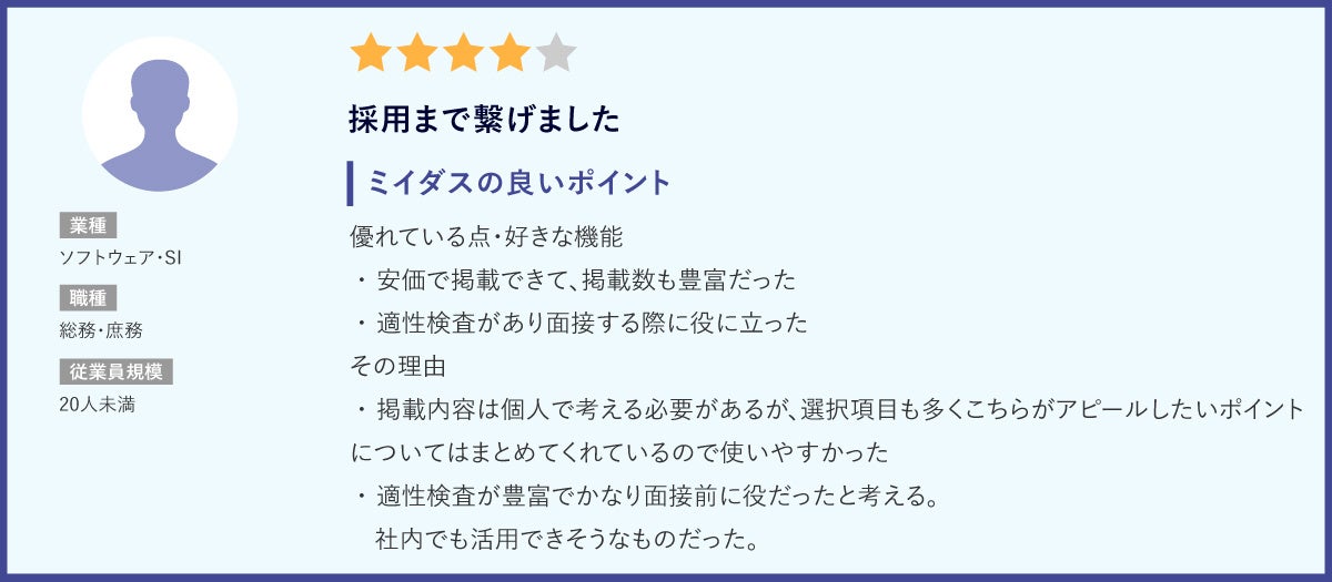 『ミイダス』をご利用いただいている皆様からは以下のようなコメントを頂戴しております。