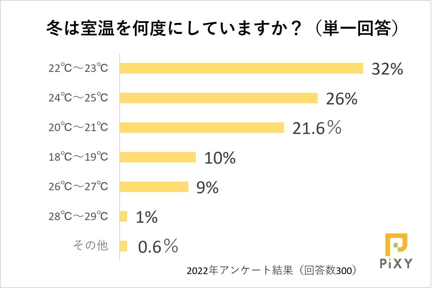 - 冬の室温は「22℃~23℃」と答えた人が32%