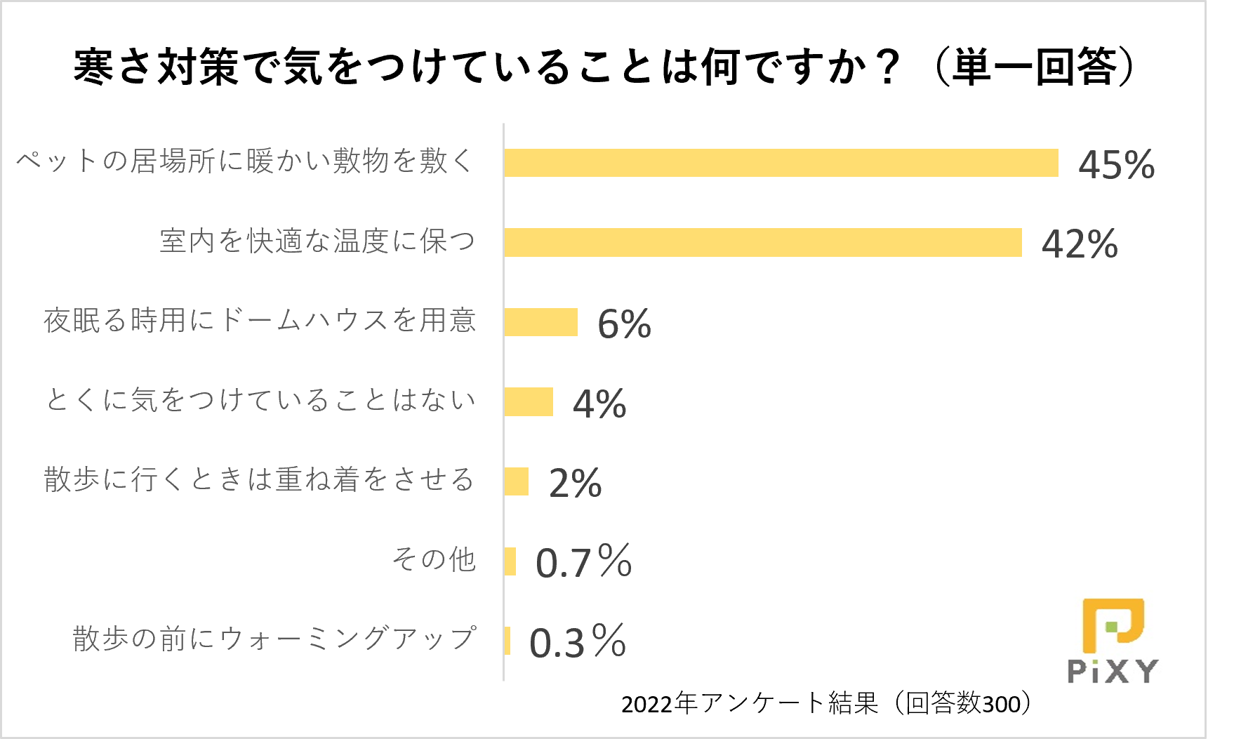 - 寒さ対策は「ペットの居場所に敷物を敷く」が45%