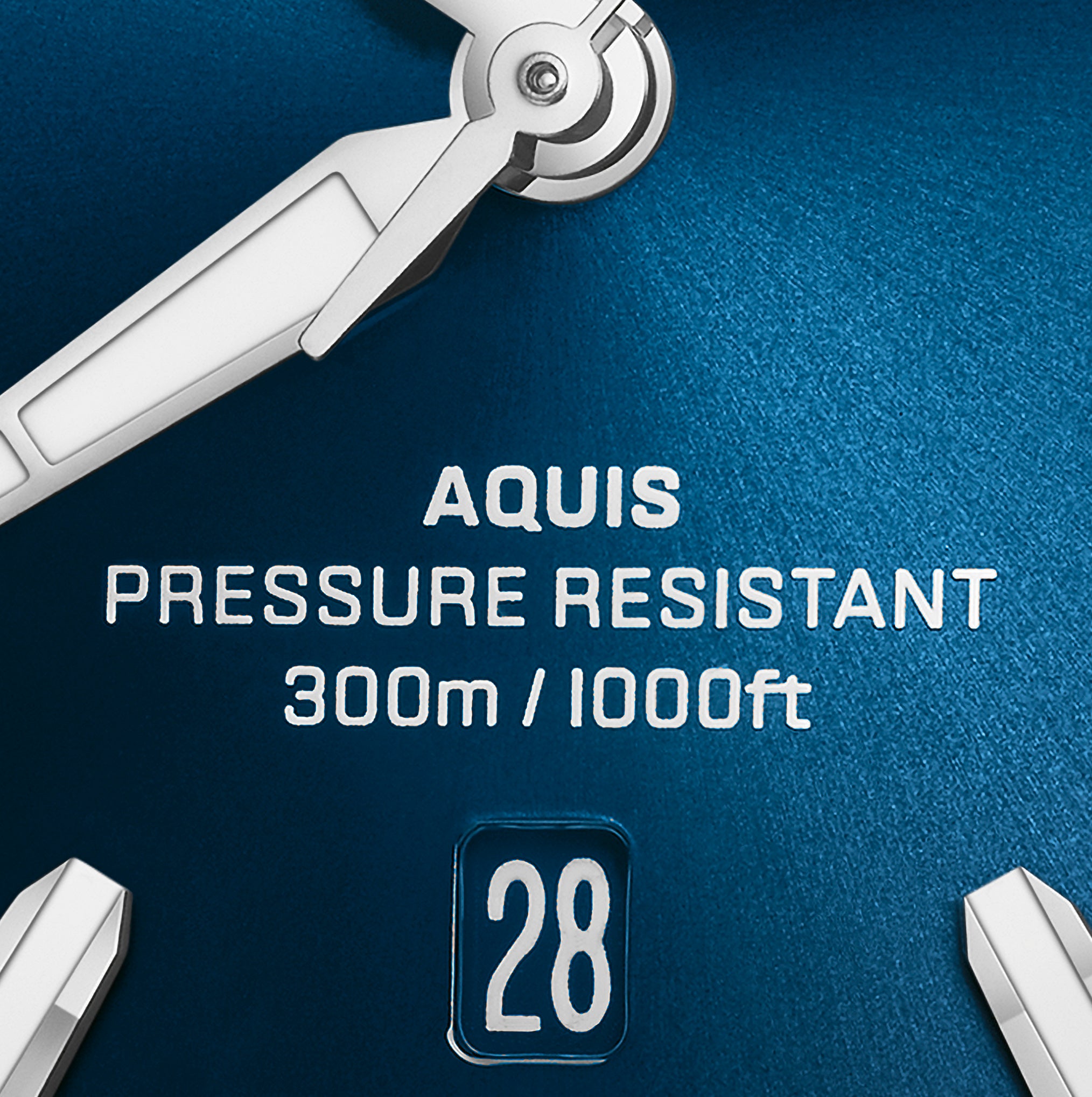 文字盤の下にも改良が加えられました。新世代アクイスのデイト表示は文字盤とマッチする色を背景に高コントラストの数字を配し、審美性も視認性も向上しています。