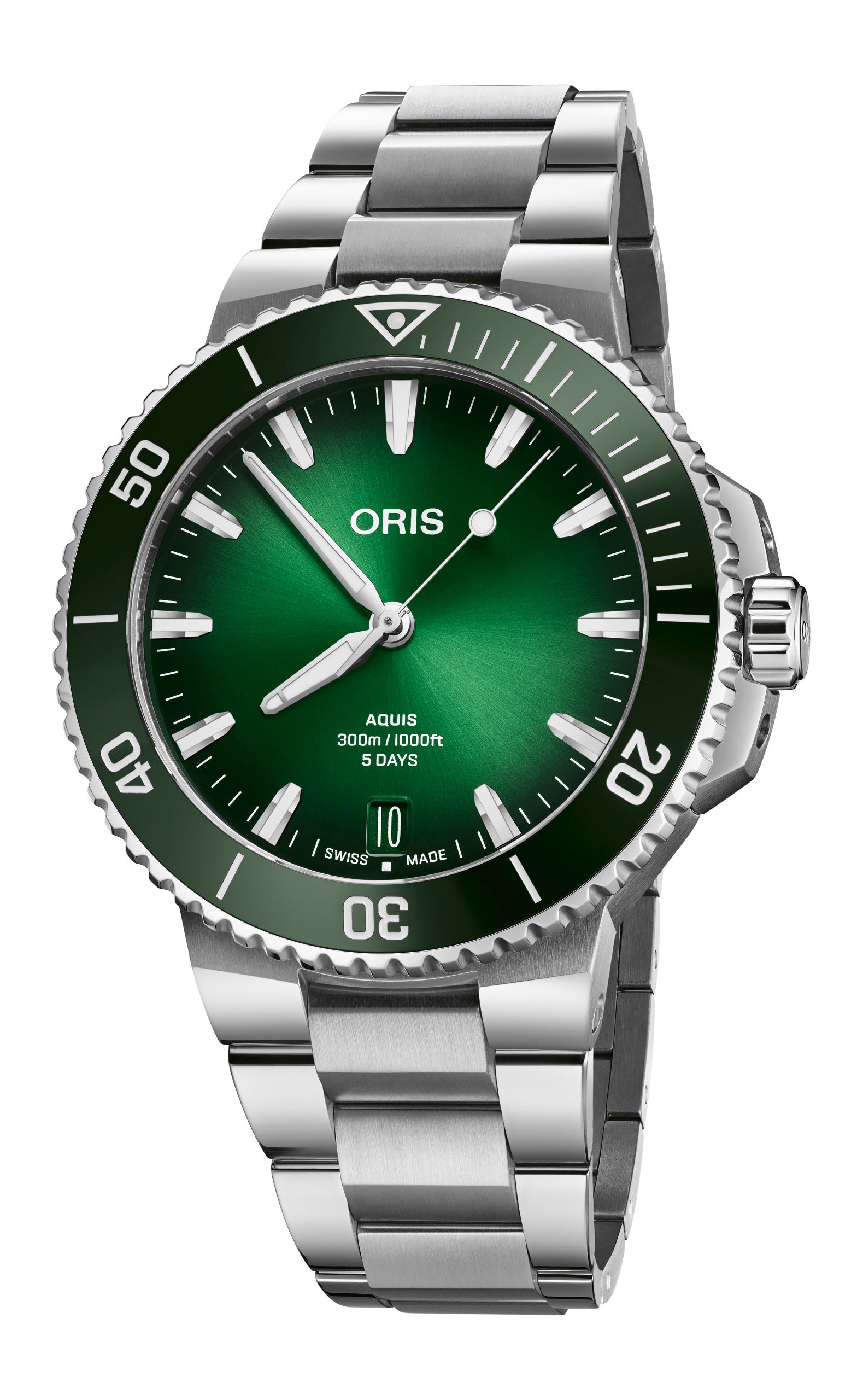 ブレスレット/ストラップ: マルチピースステンレススチールブレスレットまたはラバーストラップ(グリーン・ブルー)、オリス特許クイックチェンジシステム、オリス特許クイックアジャストストラップシステム