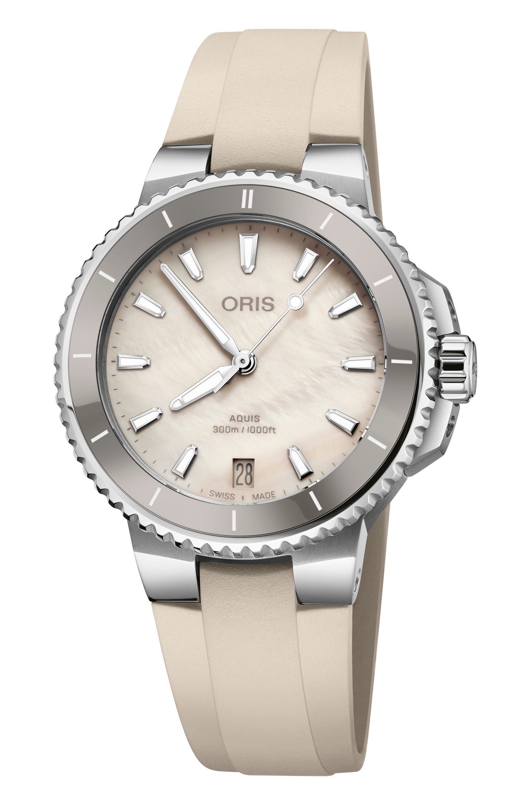 アクイスはオリスのシグネチャーモデルのひとつで、スタイリッシュで高性能、高品質のロングセラーです。新世代モデルは、以前同様オリス特許のクイックストラップチェンジシステムに加えて、クイックアジャストシステムを装備しています。