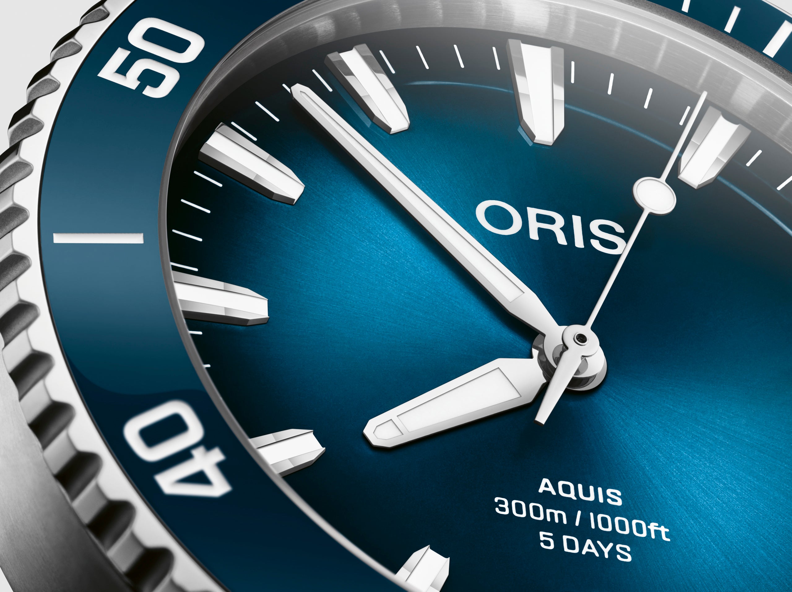 主要モデルはアクイスデイトキャリバー400 43.50㎜、自社開発の5日間パワーリザーブ自動巻、高耐磁性とオリス特許のクイックストラップチェンジシステムとクイックアジャストクラスプシステムを備えています。