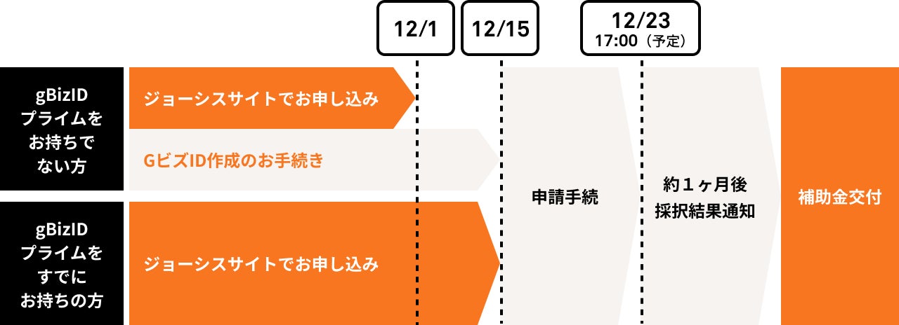 ※行政手続等において法人を認証するための仕組みである「gBizIDプライム*2」を保持されていない企業様は事前の手続きが必要になるため、2022年12月1日(木)までにお申込ください。