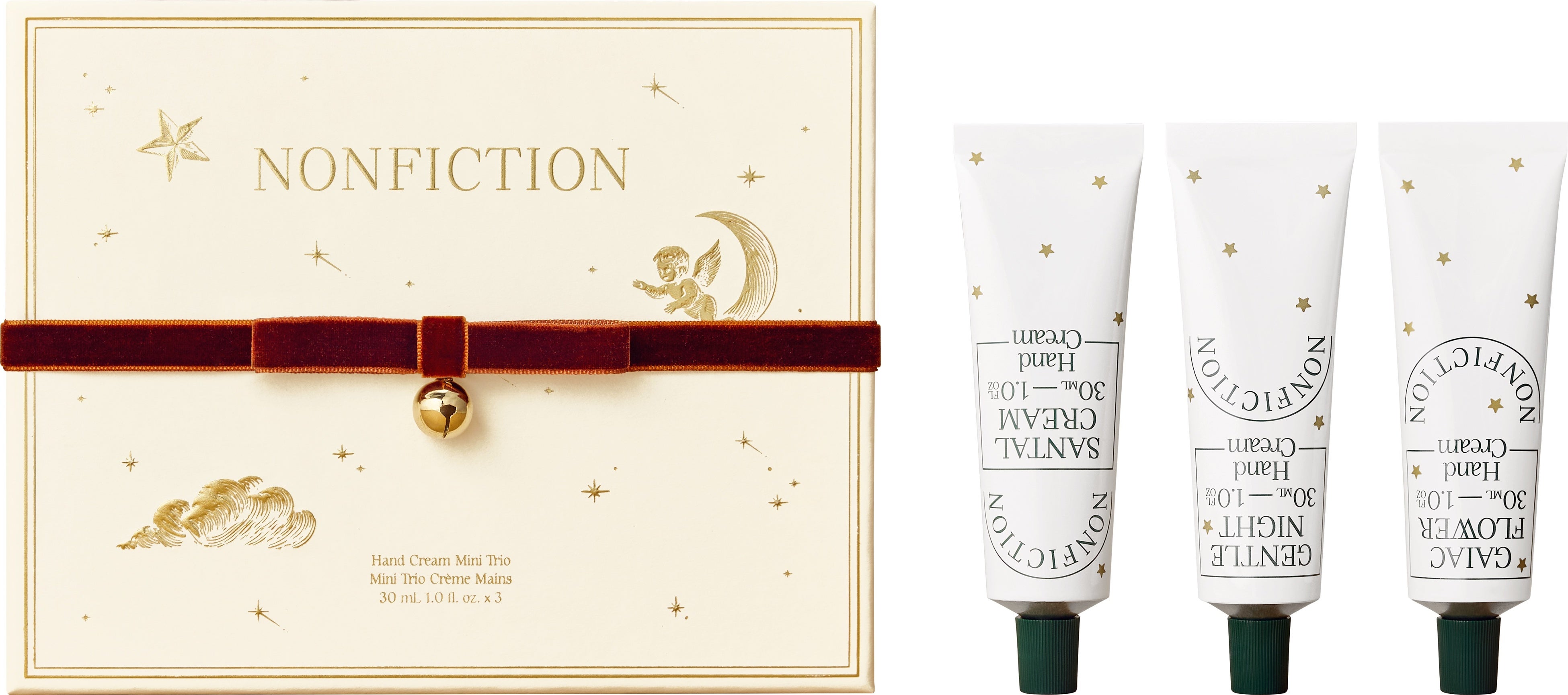 NONFICTIONを代表するハンドクリームが、ホリデーの雰囲気をよりいっそう引き立てる星のモチーフをまとい、新たな装いで登場しました。3種類のシグネチャーの香り、サンタルクリーム、ジェントルナイト、ガイアックフラワーをリミテッドエディションのホリデーパッケージでお楽しみください。シアバター*1、ビタミンE*2、植物性オイル*3を配合したハンドクリームが、すばやくうるおいを与え、乾燥が気になる手肌をみずみずしく整えます。