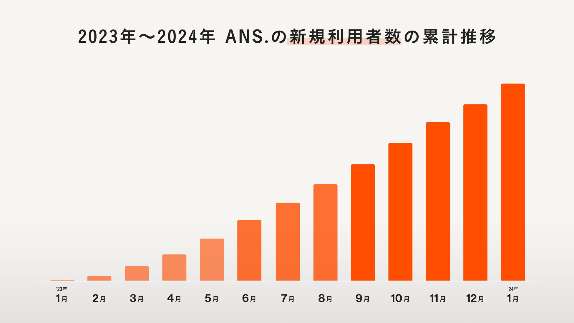 ANS.は2023年1月の本ローンチから、新規利用者数が大幅に増加しております。肌の悩みを抱える方に対し、オンラインで薬の処方・配送を行うだけでなく、デジタル技術を活用した治療継続をサポートする仕組みにより、高い継続率を実現し、肌悩み改善の結果を出しています。