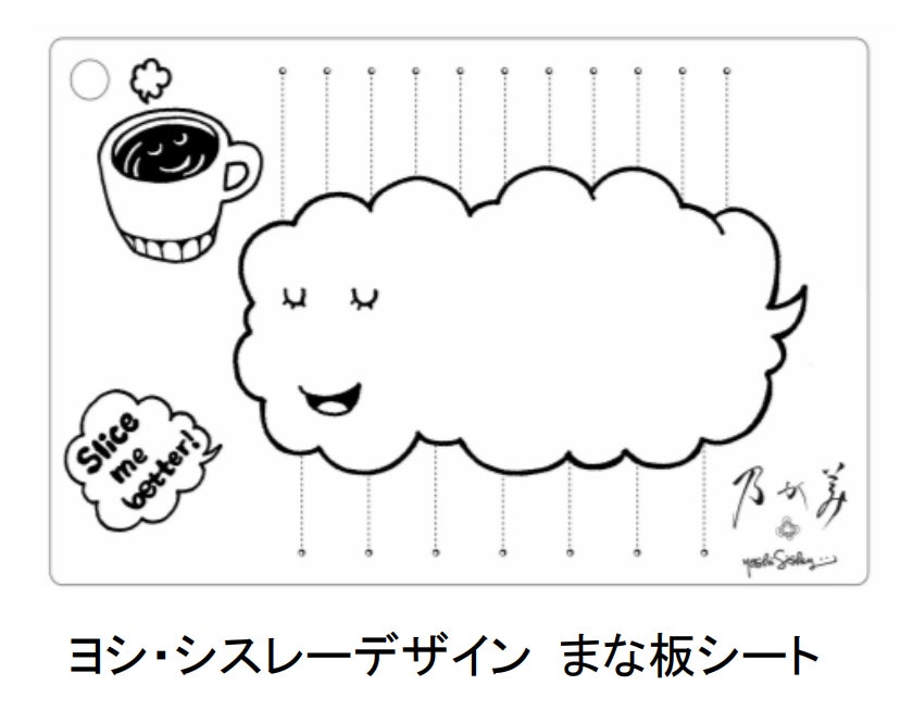 「おかえりキャンペーン」は、創業当初乃が美を愛してくださったお客様や、いつしか乃が美から足が遠のいてしまった方に、食パン業界のあらゆるタブーに挑戦し、進化し続けてきた乃が美の「生」食パンをもう一度召し上がっていただき、日常のあらゆる食事のシーンを、楽しく豊かな時間にしていただきたいという思いが込められています。本キャンペーンでは10月1日(土)、2日(日)にかけて、全国の店舗にて数量限定の「ヨシ・シスレーデザイン まな板シート」を先着順でプレゼントいたします。また、10月1日(土)から10月31日(月)のおかえりキャンペーン期間中に商品をご購入いただいたお客様に、10月3日(月)~11月30日(水)まで有効の10%割引パスポートをプレゼントいたします。
