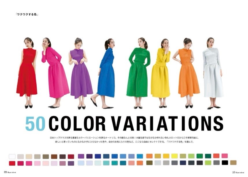 在庫を持たないからこそ可能な50色以上のカラーバリエーションとサステナブルな物作りが魅力。カラーやサイズを自分好みにカスタマイズできてオーダーする楽しみを味わってもらうことで、目の前のお客様が洋服をより愛せるきっかけになるようなブランドづくりをしている。