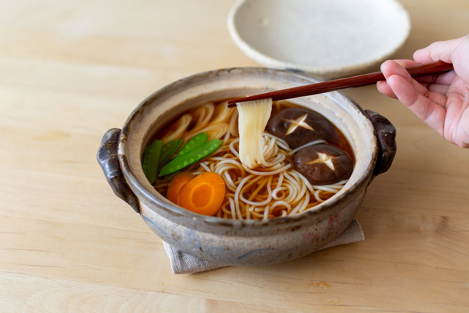 現代人に不足しがちな食物繊維やビタミン・ミネラルが豊富な玄米。その滋味豊かな味わいは、ヘルシーな食生活を心がける方におすすめです。糠に含まれる油脂分を飛ばすため、製粉前に軽く焙煎するひと手間をかけて、こだわりの玄米麺にしました。