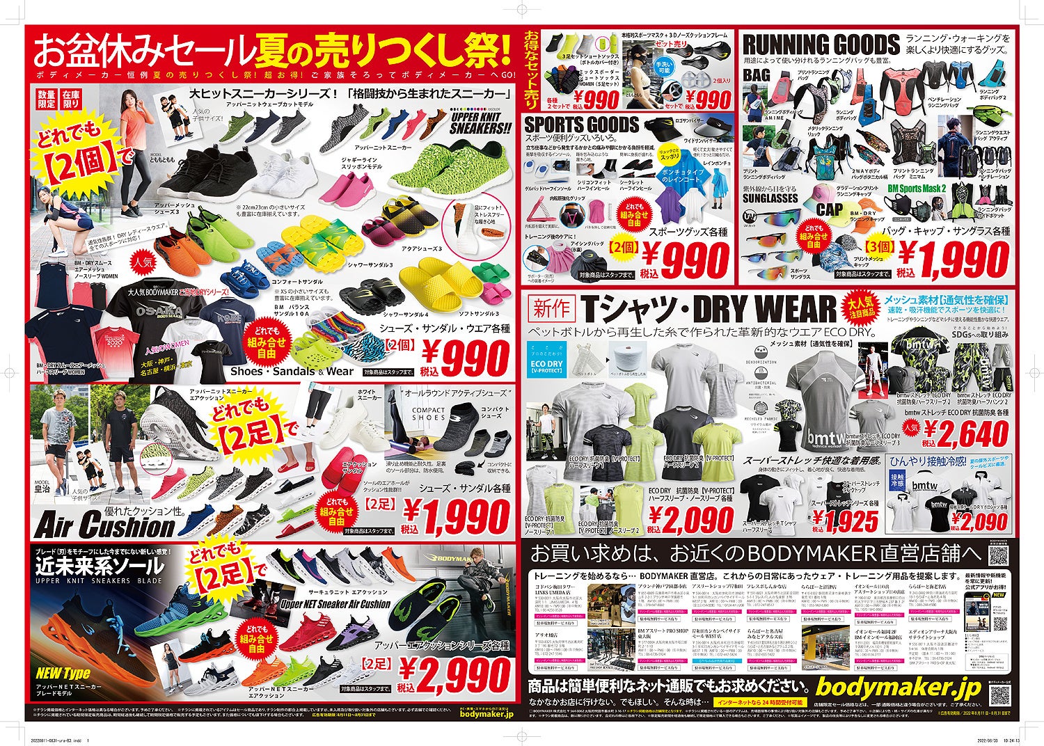 8月11日(祝)より直営店舗で「お盆休みセール」を開催。夏休み恒例の企画が盛りだくさん。ボディメーカーオンラインストアでは、一足先に8月5日(金)より同セールをスタート!