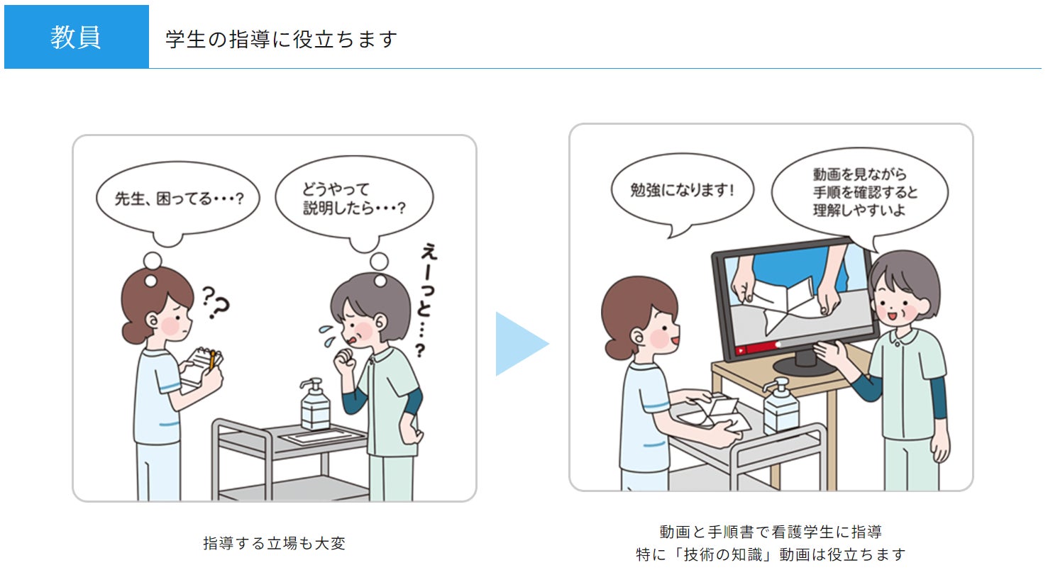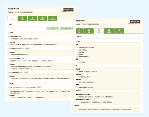 ・看護手順書と連動した最新の技術映像を看護の
