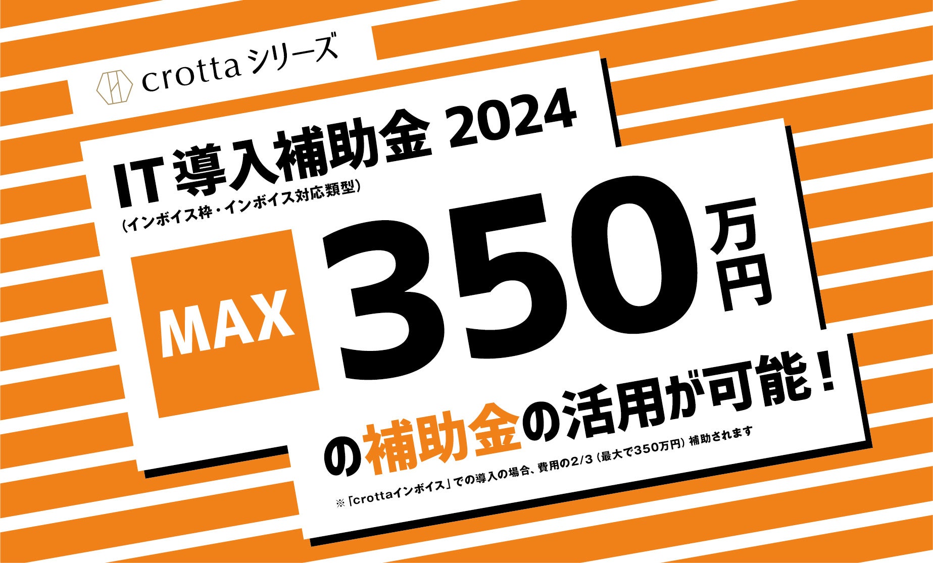株式会社ルーツ(本社:愛知県名古屋市、代表:石田 真也)は、2024年度のIT導入補助金におけるITツールとして「crottaシリーズ」が採択されたことをお知らせします。これにより、補助対象者の中小企業および小規模事業者等の皆様においては、インボイス枠(インボイス対応類型)として費用の2/3(最大350万円)の補助を受け、宿泊施設のインボイス対応およびデジタル化や業務効率化の推進を図ることができます。