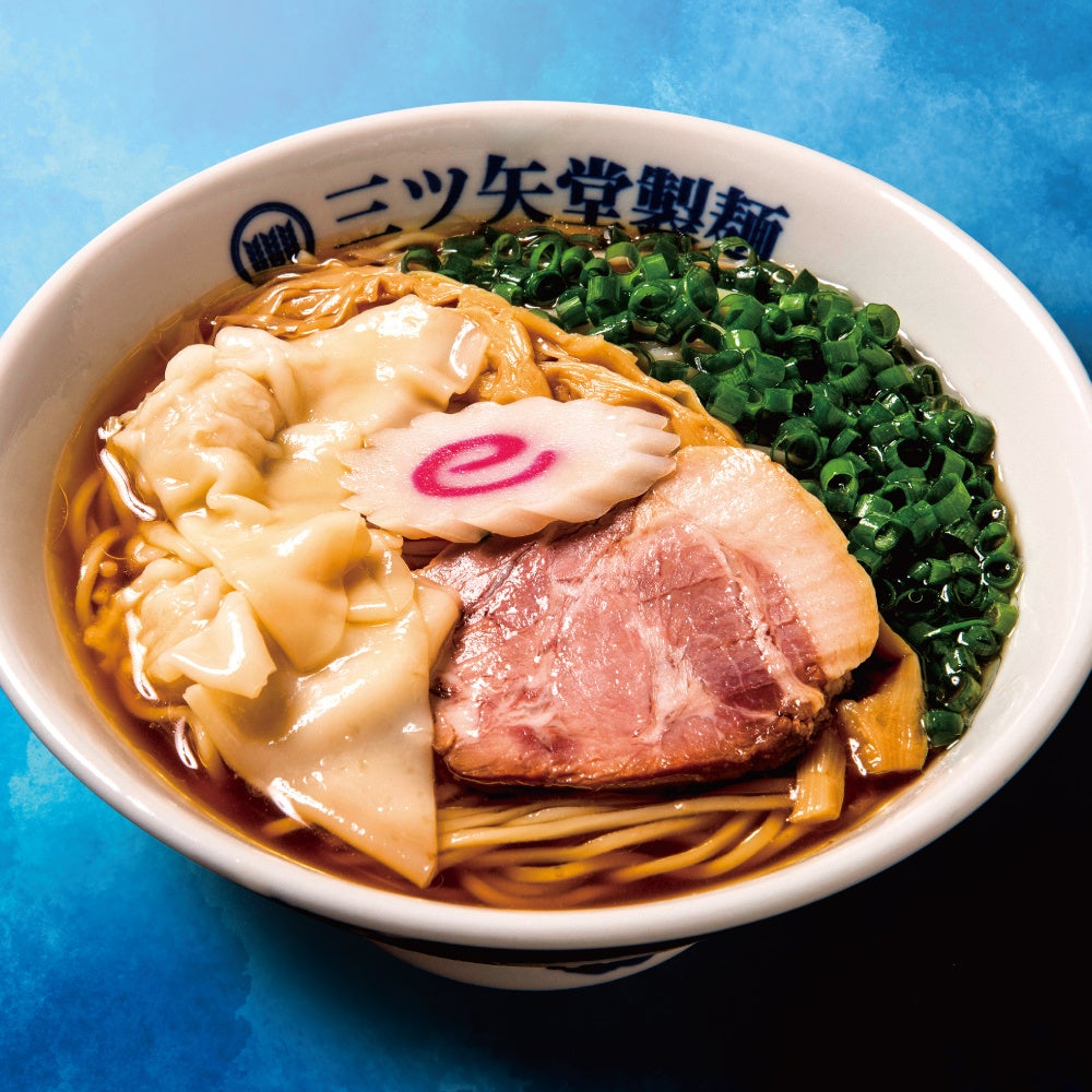 具材には豚肉の餡がたっぷり詰まった肉々しいワンタンを使い、こちらもしっかり冷やして