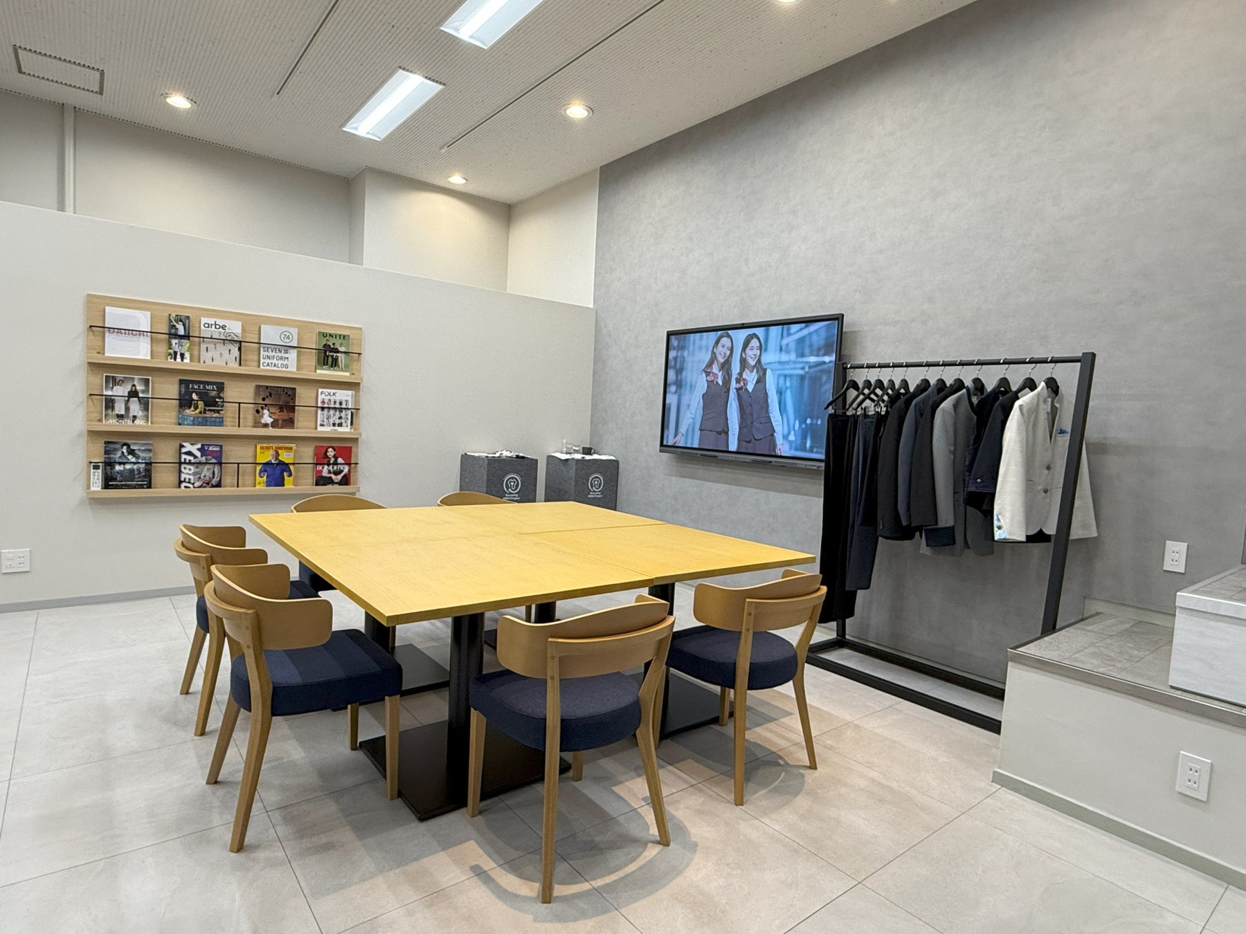 ショールームでは、ユニフォームの展示はもちろんのこと、大型モニターを構え、デジタルプレゼンテーションも可能。お客様と共につくる新たなクリエイティブスペースです。