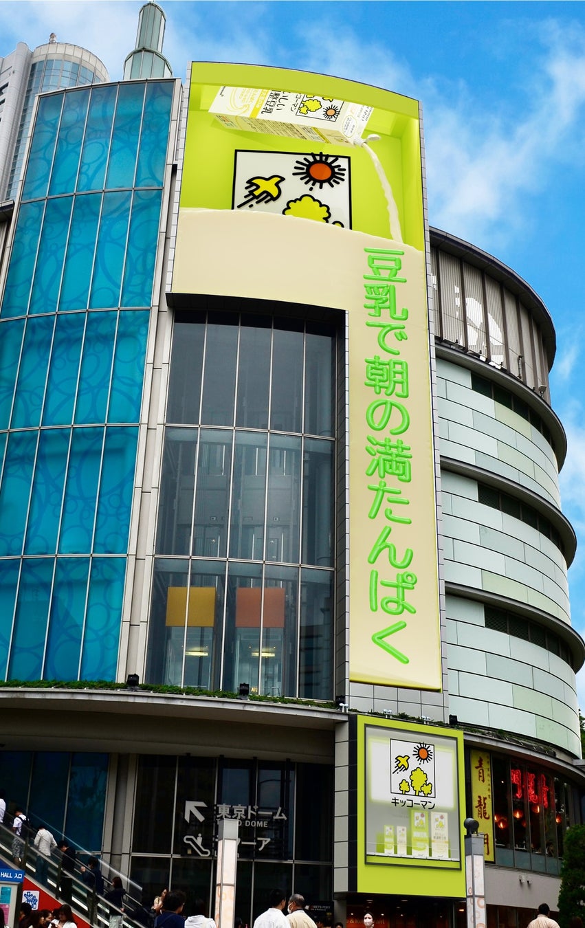東京ドームシティ内の高さ28mの巨大ビジョンでキッコーマン豆乳のブランドムービーを放映 「ミーツポートビジョン」の上段・中段・下段を一体的に使用した“初の企業映像放映”