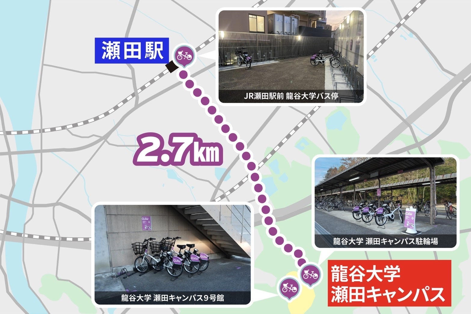 ポート数 : 3か所(龍谷大学瀬田キャンパス駐輪場・瀬田キャンパス9号館・JR瀬田駅前龍谷大学バス停)
