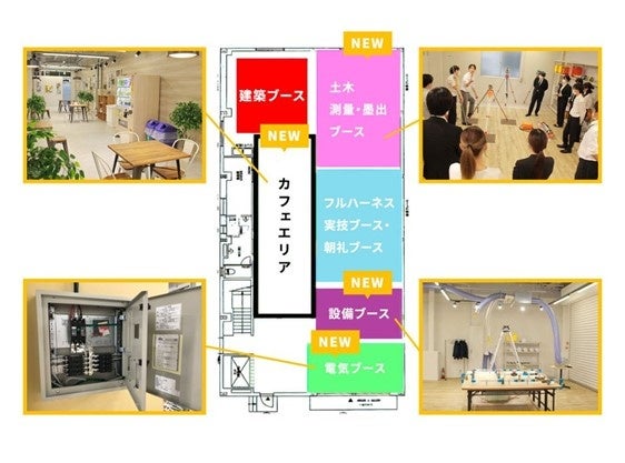 2023年6月、東京都江東区潮見に設置している実技研修施設の夢トレはリニューアルしました。夢トレは現場で早期に活躍できる人材の育成を目的としており、座学用の研修室から実技を学べるスペースまで施工管理について学べる環境です。実際の現場を再現して、建設現場での1日の流れや作業着・保護具の着用方法、作業工程や部材の把握など現場の基本を就業前に技術社員は学んでいます。今回のリニューアルでは、新たに業種別研修に対応し、カフェスペースを新設いたしましたのでご紹介します。