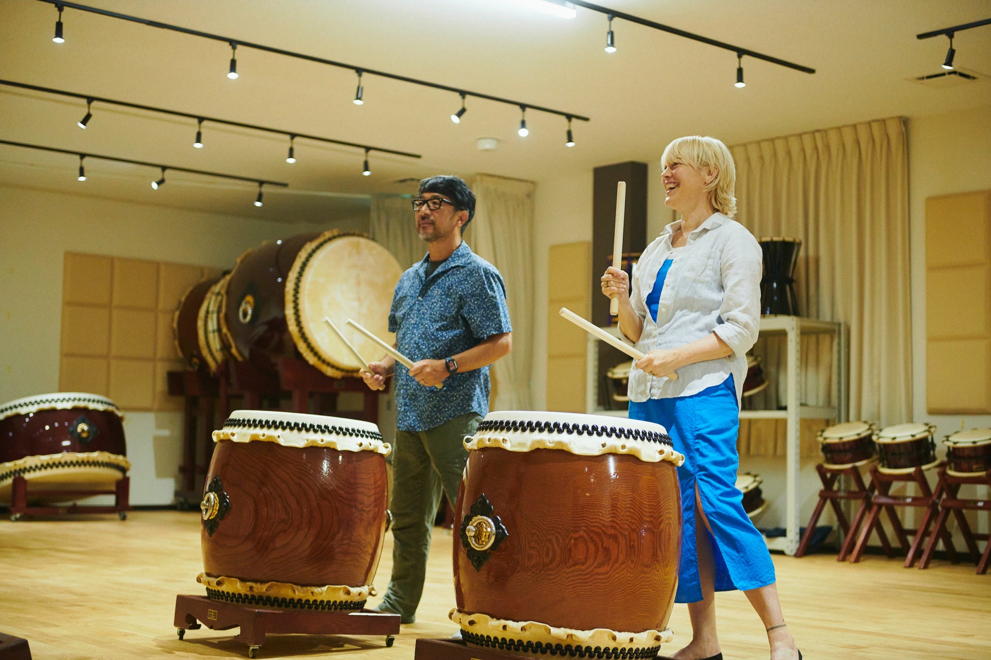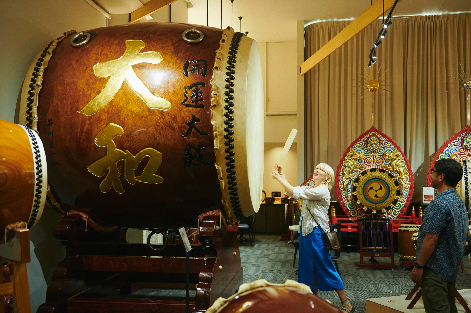「日本人の音の原点は太鼓である」和太鼓を専門に製作し続けて400年以上の歴史を持つこの工房に伺うと、そう教えられる。確かに、日本各地のさまざまな祭りや神事、伝統芸能に至るまで、太鼓が登場しないものを探す方が難しい。一角では、修繕の様子も見学することができる。日本全国からメンテナンスを求めて多くの太鼓が送られてくる。太鼓の側面にはその太鼓の持ち主や地域の名前が書かれていることが多く、体色した木肌の色や牛皮の色からその太鼓がどのような人たちに愛されてここに戻ってきたのかを想像することが楽しくてたまらなくなる。最後には、専門の奏者によるレクチャーがあり、太鼓の演奏体験ができる。