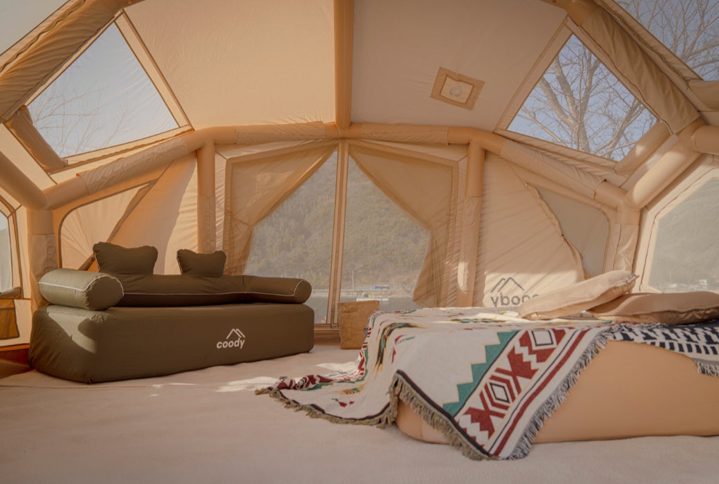 coodyのエアテントは、ポンプで空気を入れるだけの簡単設営。
