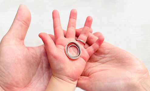 生まれてきてくれてありがとうの気持ちをこめて指輪を手がけましょう。できあがるのは赤ちゃんがするほどの、小さなかわいい指輪です。