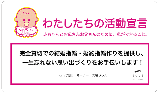 東京/代官山の手作り結婚指輪・婚約指輪・ペアリングの「icci 代官山」、「ベビーファースト運動」に参画について