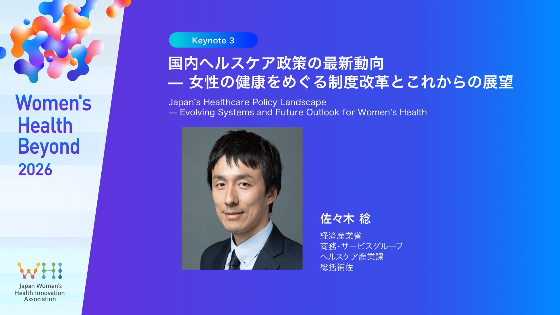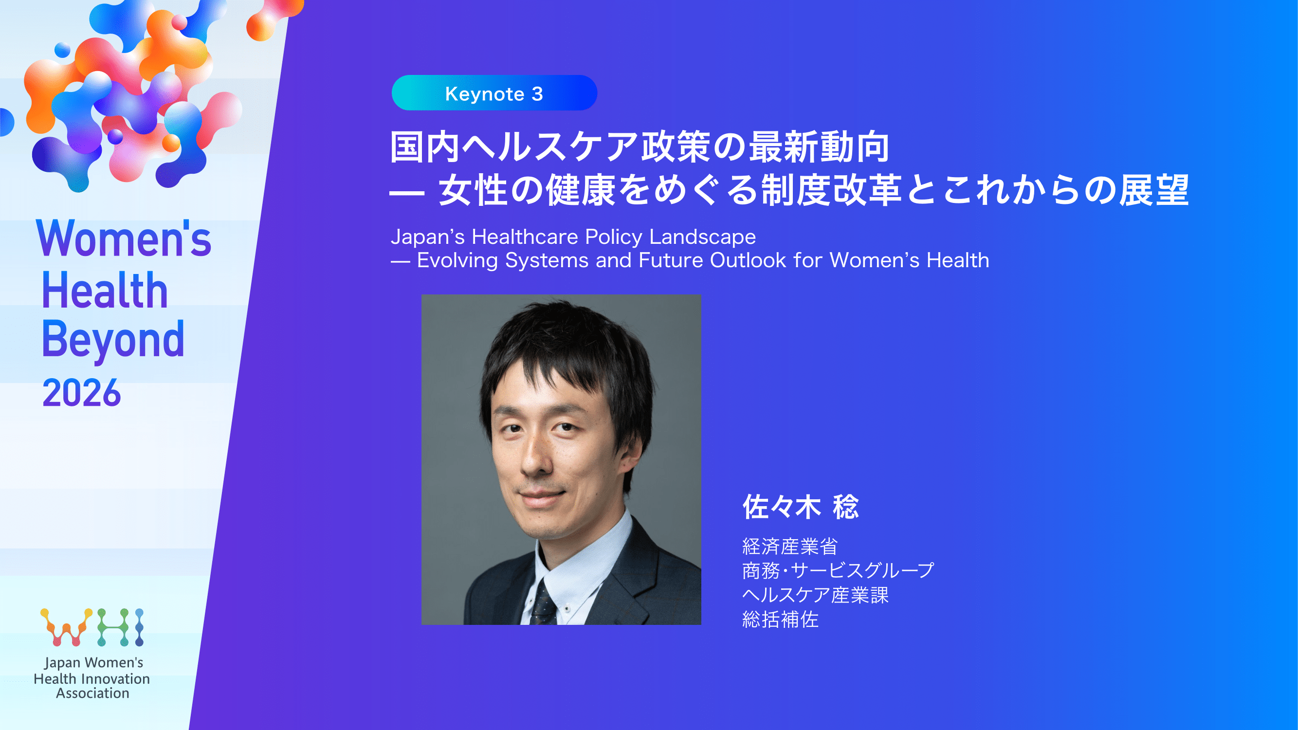 新政権のもと日本の医療・ヘルスケア政策に置いても新しい施策が検討されています。その中で、女性の健康は社会課題として明確に位置づけられ、制度改革やヘルステック推進を通じた包括的な支援の議論が進んでいます。本セッションでは、女性の健康をめぐる最新の政策動向を整理し、今後の社会実装や産業連携、スタートアップ・企業にとっての可能性と展望を紹介します。