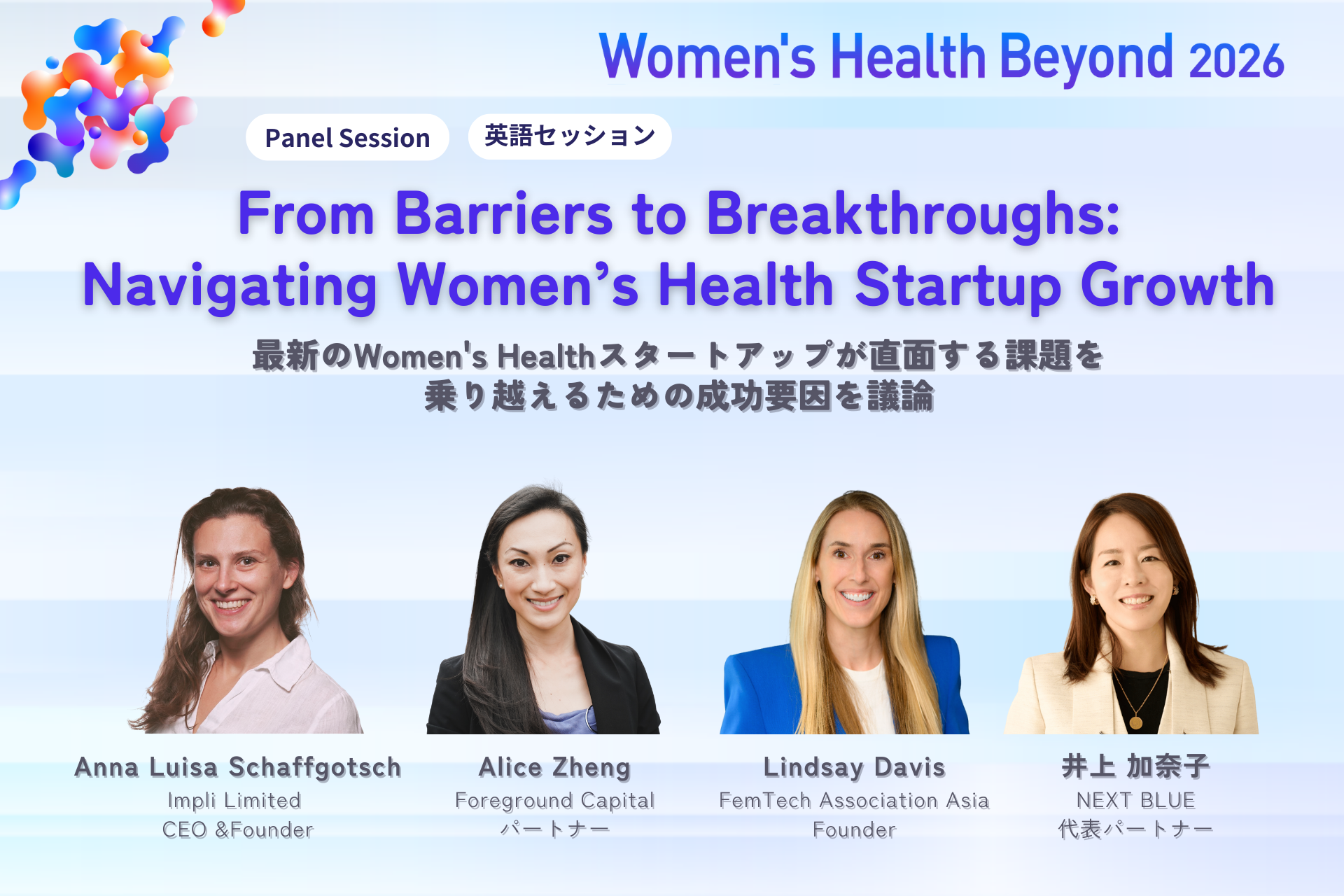 参加者:Women's Health領域の起業家・スタートアップ、投資家・アクセラレーター、大企業、アカデミア・専門家、行政・自治体、メディアなど、国内外の多様な関係者(約300名を想定)