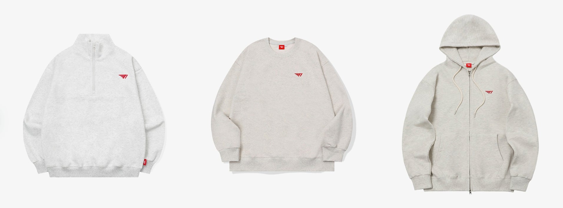 中央:T1 ロゴ・スウェットシャツ ¥8,800(税込)
