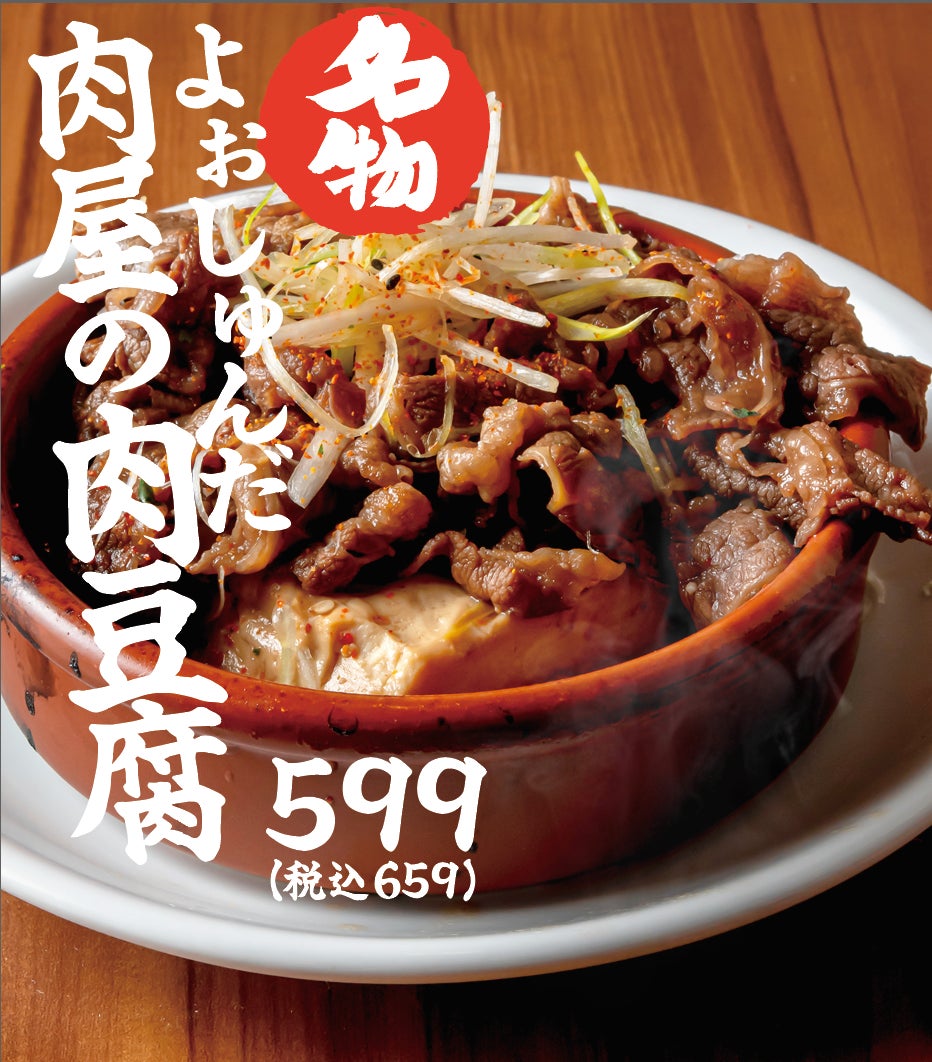 肉の旨みがしみ込んだ特製肉豆腐!じっくり煮込まれた牛肉と豆腐が、口の中でとろける逸品。お酒との相性も抜群で、一度食べたらやみつきに!