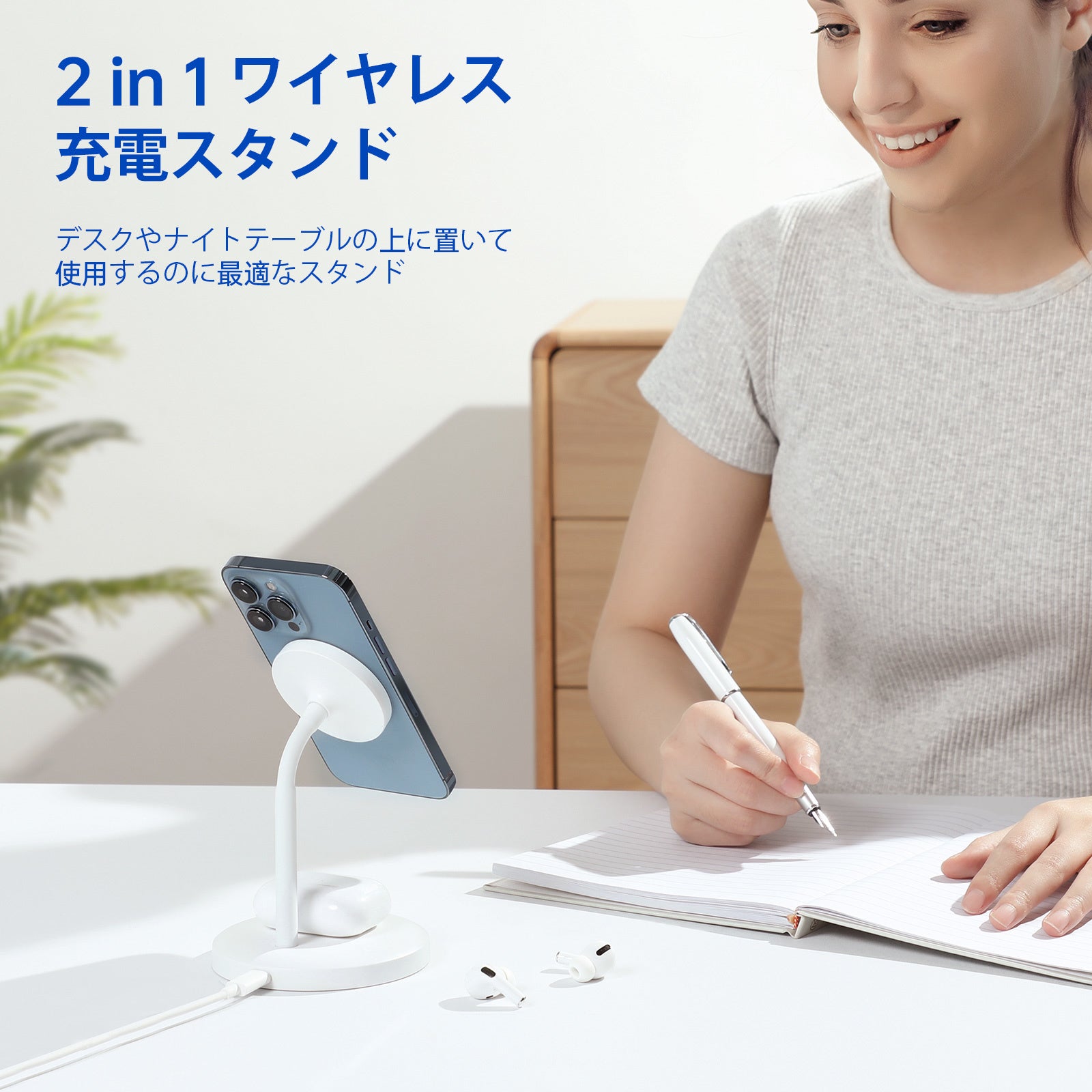 【2in1でスタンド&ワイヤレス充電器】Syncwire磁気ワイヤレス充電スタンドは、携帯電話やイヤホンのホルダーとワイヤレス充電器の両方で、充電しながらビデオチャット、ビデオ/映画鑑賞、ライブストリーミング、オンライン授業などのニーズに応えます。