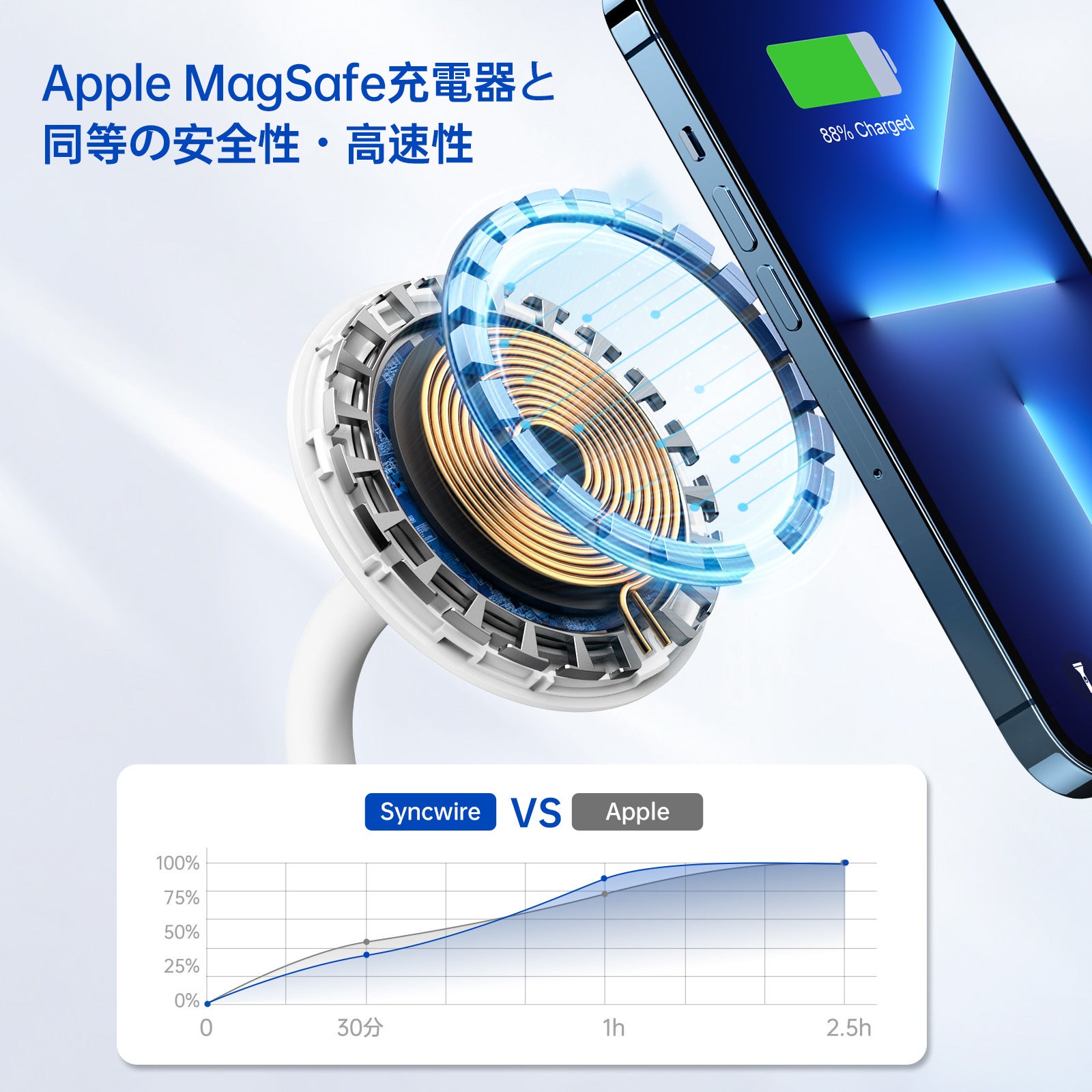 【20% 割引 + ¥500 クーポン】Syncwire Magsafe ワイヤレス 充電器【360°回転+ 2台同時充電+ケーブル付属】