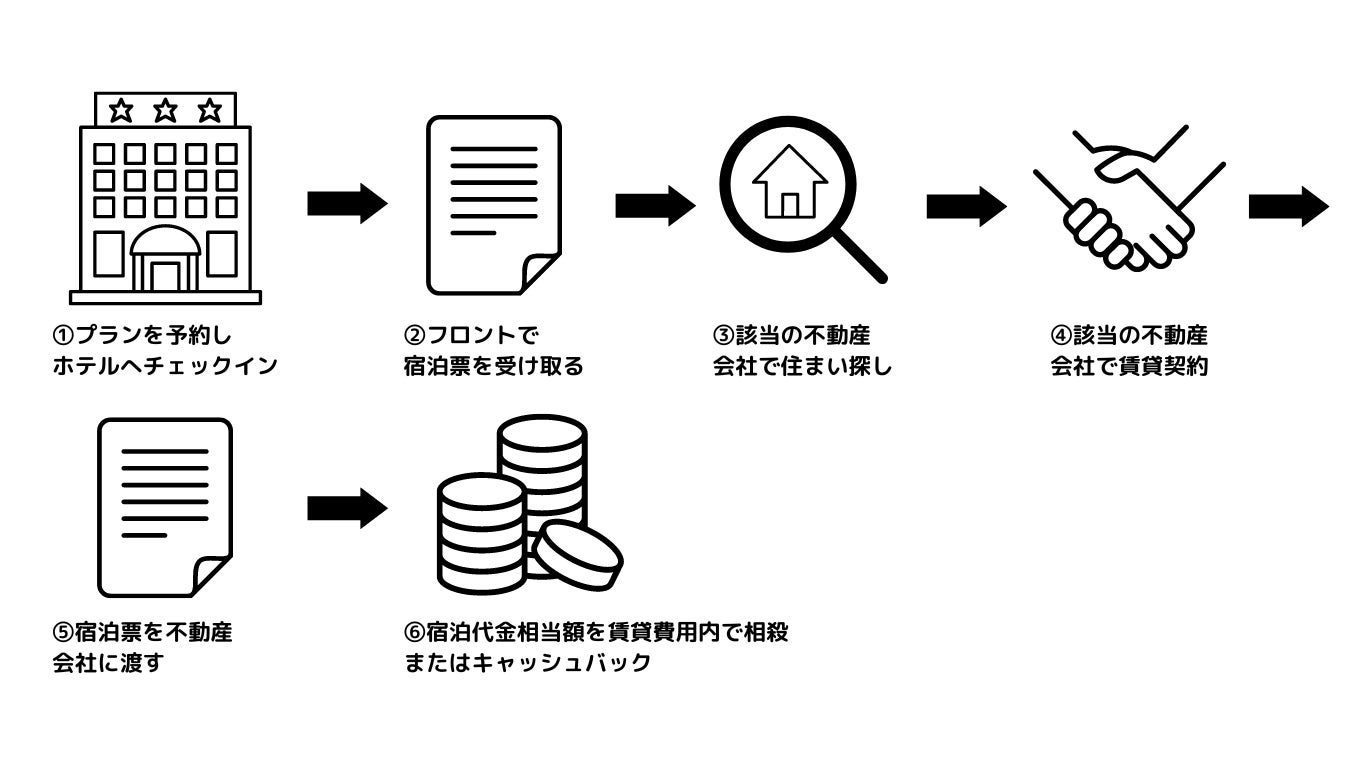 ※ホテル代の還付は、当宿泊プランの客室料金のみ対象です。※還付適用条件は、当宿泊プランを通じて当ホテルを予約し、ご本人様または親権者様が該当の不動産会社と建物賃貸借契約を締結した場合となります。※1契約につき1泊分までが対象です。複数件ご予約いただいても、還付対象になりません。ご了承ください。※三軒茶屋不動産株式会社およびエステイター株式会社との特別企画です。その他の不動産会社に還付申請はできません。※還付請求の期限はチェックアウト後30日間です。※スムーズに物件の提案をさせていただくために、ご予約後10日以内にお客様ご自身で該当の不動産会社にご連絡の上、あらかじめご希望をお伝えください。