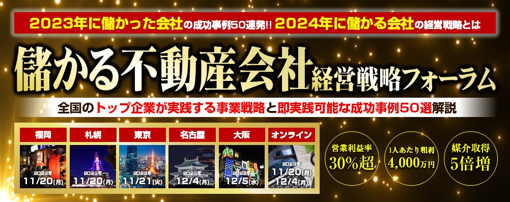 【全国横断(オンライン開催あり)儲かる不動産会社 経営戦略フォーラム2023】