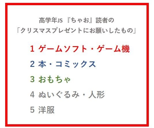 1. クリスマスプレゼントにお願いしたものランキングでは「ゲームソフト、ゲーム機」に人気集中!
