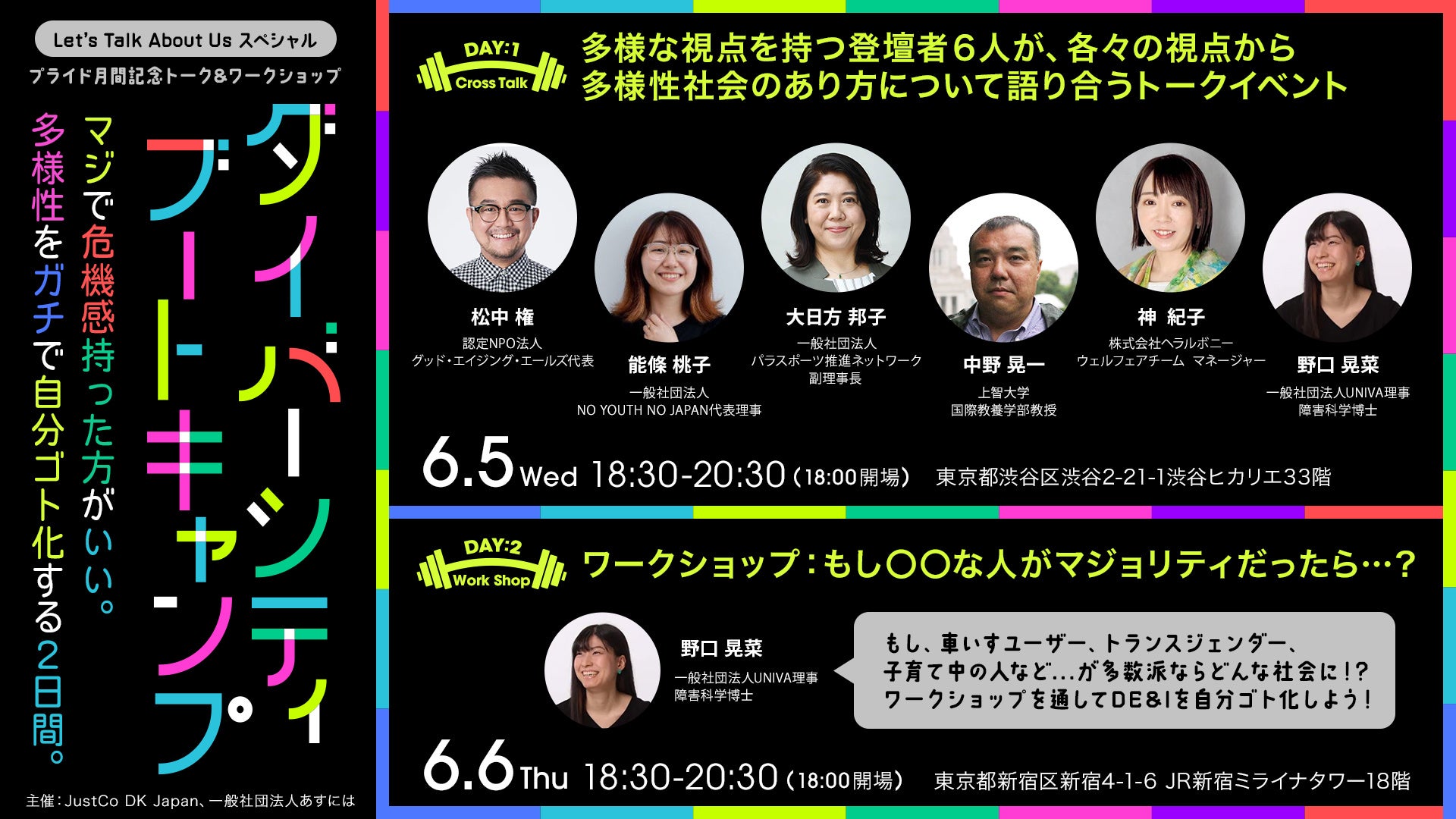 プレミアムコワーキングのJustCo、プライド月間記念のクロストーク&ワークショップ、「ダイバーシティ・ブートキャンプ ~マジで危機感持った方がいい。多様性をガチで自分ゴト化する2日間」を開催。